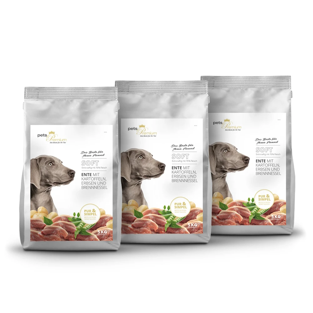 pets Premium – Trockenfutter – Vorteilspaket Soft Ente mit Kartoffeln, Erbsen und Brennnessel (getreidefrei)