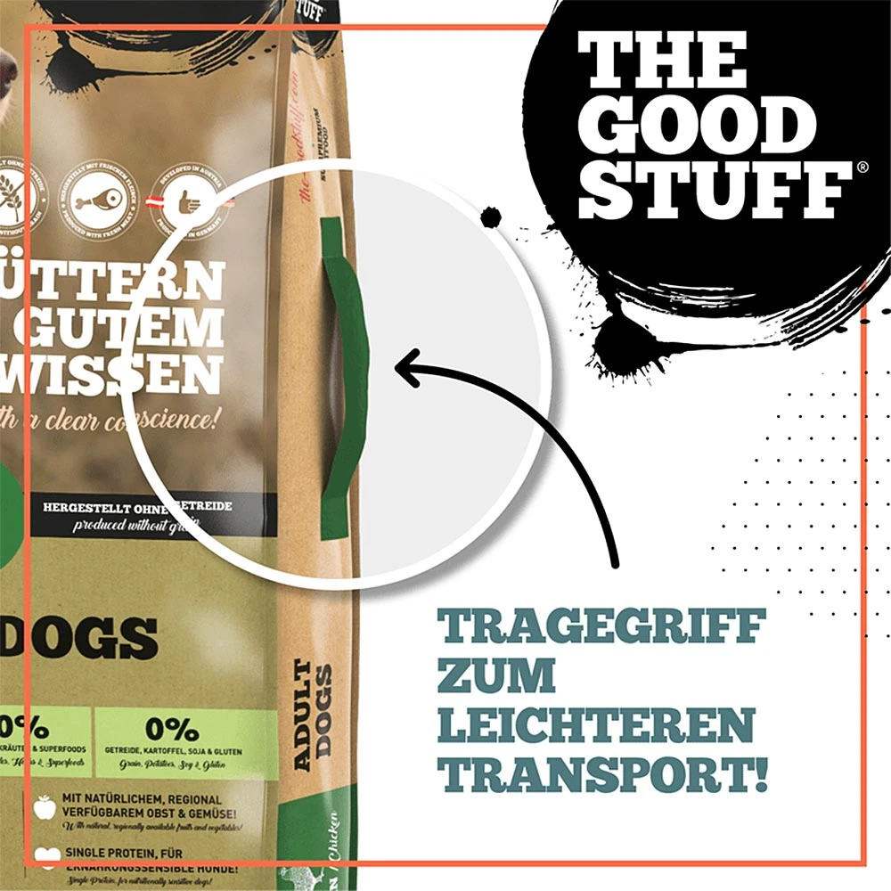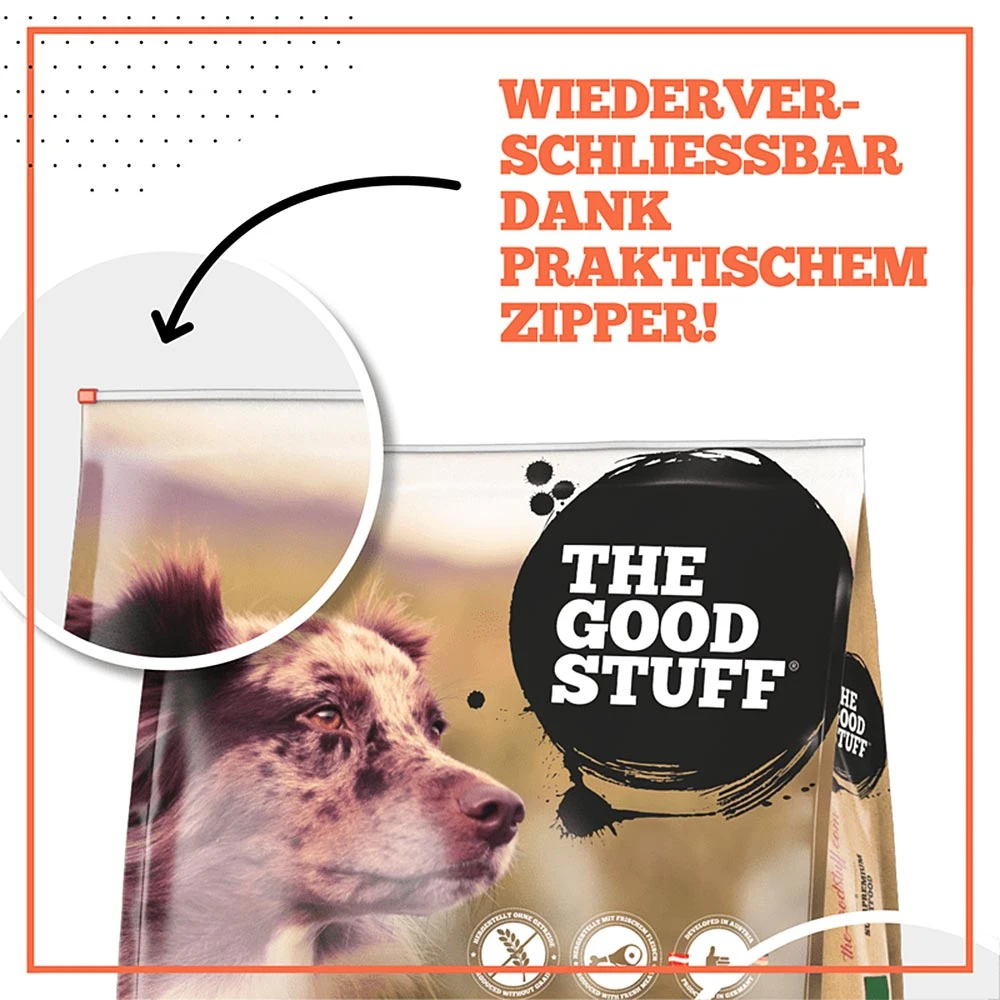 TROCKENFUTTER PFERD in bewährter THE GOODSTUFF Super Premium-Qualität ist ein Alleinfuttermittel für ausgewachsene Hunde aller Rassen und Größen. Pferdefleisch ist hypoallergen und somit auch für ernährungssensible Hunde besonders gut verträglich. Schonend hergestellt ohne Getreide, reich an frischem Pferde-Muskelfleisch, regional verfügbarem Obst & Gemüse, ausgewählten Kräutern sowie hochwertigen Omega-6 und Omega-3 Fettsäuren aus natürlichen Quellen wie Krill und Distelöl.