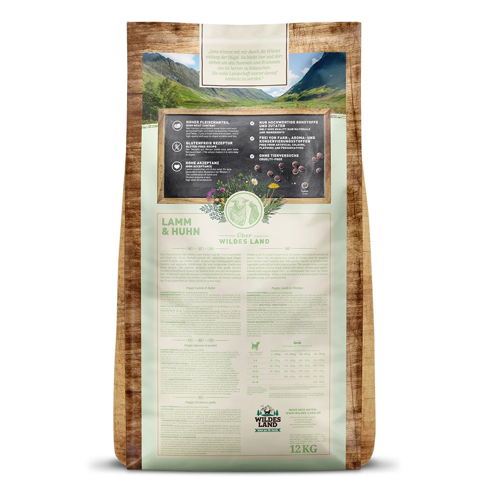 Das Trockenfutter Puppy Lamm und Huhn mit Reis und Wildkräutern von Wildes Land im Überblick: