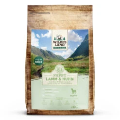 Wildes Land Trockenfutter Puppy Lamm & Huhn mit Reis und Wildkräutern eignet sich für heranwachsende Hunde aller Rassen.
