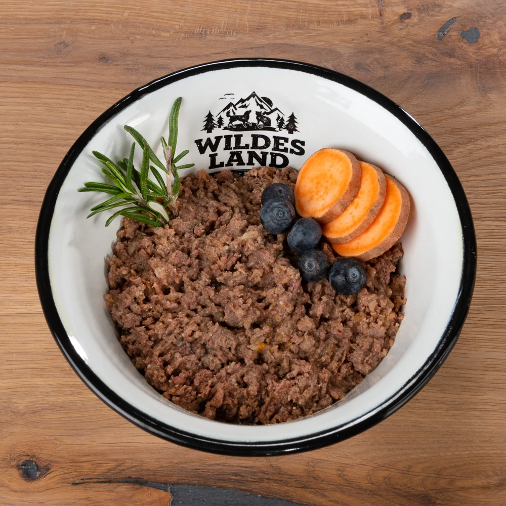 Natürlich ist das Nassfutter von Wildes Land frei von Farb-, Aroma- und Konservierungsstoffen und es wird zudem ausnahmslos ohne Tierversuche entwickelt und produziert. Mit Wildes Land bekommt Ihr Liebling die Ursprünglichkeit der Natur direkt in den Napf. Wildes Land Nassfutter Puppy Rind mit Süßkartoffeln, Äpfeln, Wildkräutern und Distelöl eignet sich für heranwachsene Hunde aller Rassen.