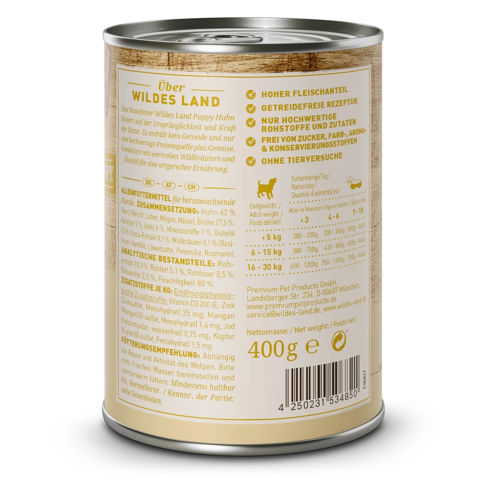 Wildes Land – Nassfutter – Puppy Huhn mit Karotte, Apfel und Wildkräutern 6 x 400 g