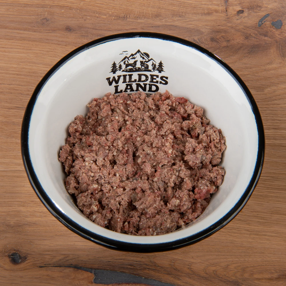 Für das Wohlbefinden Ihres Hundes ist eine ausgewogene Ernährung mit hochwertigen Proteinen unerlässlich. Das Nassfutter von Wildes Land basiert auf der Ursprünglichkeit und Kraft der Natur. Deshalb enthält die Sorte Puppy Lamm nur eine hochwertige Proteinquelle für eine artgerechte Ernährung. Mit einem Gesamtanteil an Muskelfleisch und Innereien von mehr als 60 % besitzt es eine ausgezeichnete Akzeptanz und Verträglichkeit. Ergänzt wird die Rezeptur nur mit glutenfreiem Reis, Kürbis, Wildkräutern und Distelöl – kombiniert nach den neuesten wissenschaftlichen Erkenntnissen. Mit dem Wildes Land Nassfutter Puppy Lamm wird Ihr Hund mit allen wichtigen Nährstoffen und Vitaminen versorgt, die er im Wachstum benötigt.