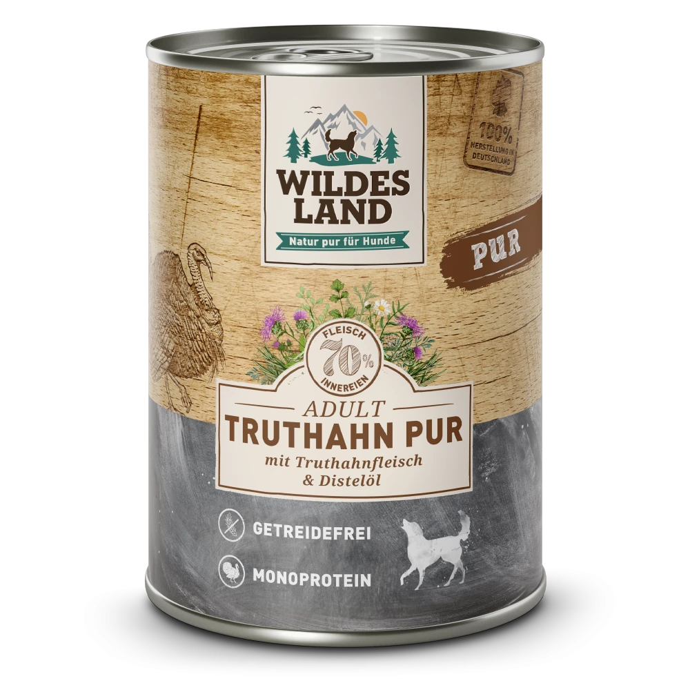 Das Nassfutter Truthahn PUR mit Distelöl von Wildes Land im Überblick: