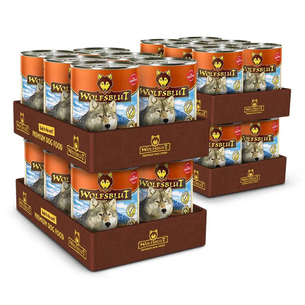 Die Rezeptur von ALASKA SALMON Nassfutter verbindet die Nahrung des Wolfs mit den neuesten wissenschaftlichen Erkenntnissen über richtige Hundeernährung. In den Rocky Mountains Nordamerikas, der arktischen Tundra, den Bergen und Wäldern Europas bis hin zu den Wüsten und Steppen Zentralasiens jagen Wölfe ihre Beute. Diese versorgt sie mit Fleisch und nährstoffreichen Innereien, aber auch mit Gemüse, Früchten, Beeren, Wurzeln und Kräutern über den Mageninhalt der Beute. Getreide gehört hier nicht dazu. So erhält der Wolf seine benötigten Vitamine, Mineralstoffe, Spurenelemente, Enzyme und sekundären Pflanzenstoffe. Da der Wolf der Urahn aller Hunde ist, orientiert sich unser Wolfsblut Hundenassfutter an diesen natürlichen Fressgewohnheiten des Wolfs. Es enthält viel Fleisch oder Fisch kombiniert mit Superfoods, die wertvolle Inhaltsstoffe enthalten – und das wie in der Natur, ganz ohne Getreide. Unsere Auswahl an außergewöhnlichen Fleischsorten und nährstoffreichen Superfoods baut dabei auf den Lebensräumen des Wolfs und deren bunter Nahrungsvielfalt auf. Wolfsblut bietet jedem Hund eine artgerechte und ursprüngliche Ernährung und mit seiner Sortenvielfalt ist für jeden etwas dabei, das er verträgt. Die einzelnen Futterbestandteile von ALASKA SALMON wurden zusammen mit Tierärzten, passend zum natürlichen Beuteschema des Wolfs und den Erkenntnissen zu ganzheitlicher Hundeernährung, zusammengestellt. Das Nassfutter von Wolfsblut ist damit einzigartig und enthalten viele Superfoods.