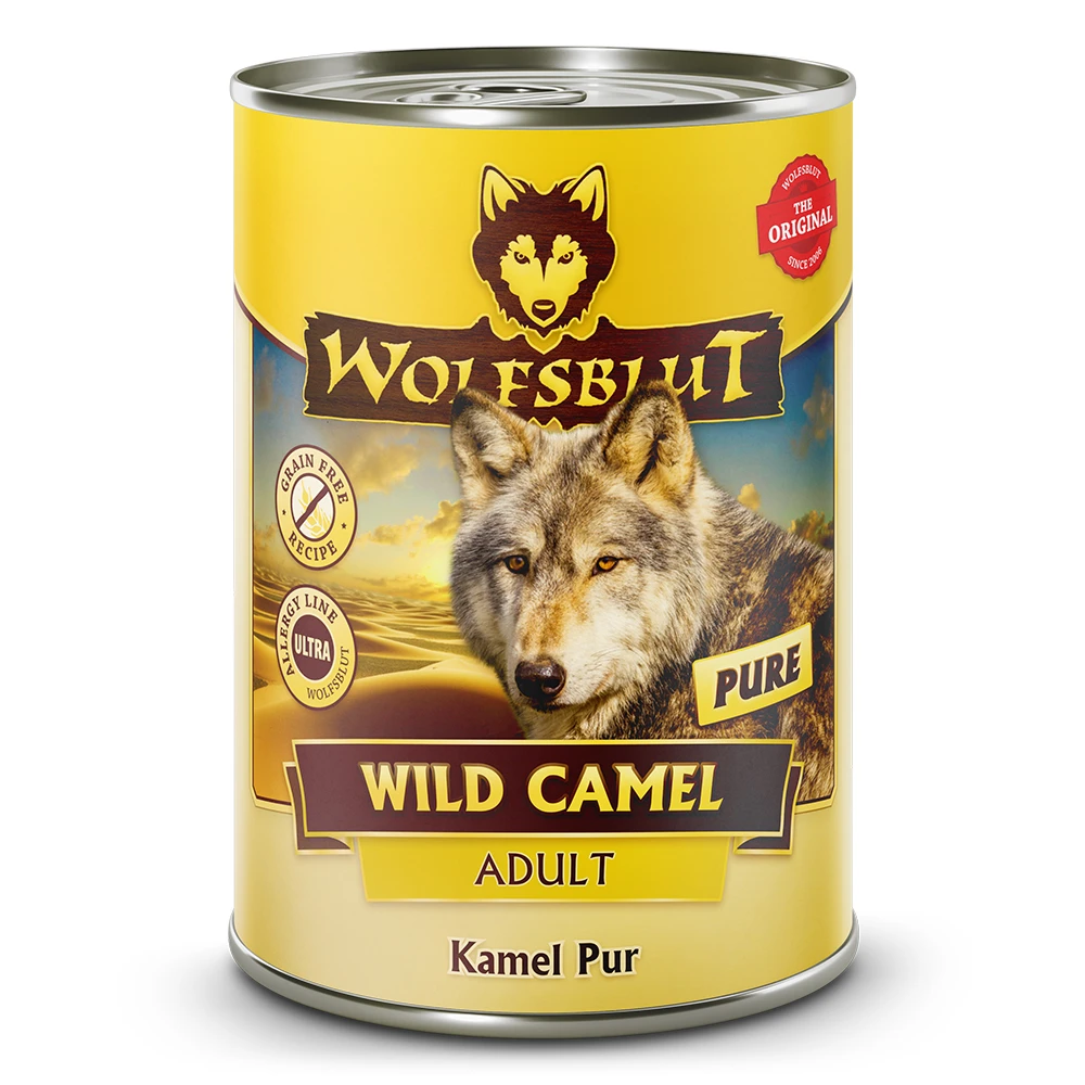 WILD CAMEL PURE wurde zusammen mit Tierärzten als hypoallergene Sorte entwickelt und enthält mit Kamel eine eher seltene Fleischquelle und sonst nichts. Das Nassfutter von Wolfsblut ist damit einzigartig. In den Rocky Mountains Nordamerikas, der arktischen Tundra, den Bergen und Wäldern Europas bis hin zu den Wüsten und Steppen Zentralasiens jagen Wölfe ihre Beute. Diese versorgt sie mit Fleisch und nährstoffreichen Innereien. Getreide gehört hier nicht dazu. Da der Wolf der Urahn aller Hunde ist, orientiert sich unser Wolfsblut Hundenassfutter Pure an diesen natürlichen Fressgewohnheiten des Wolfs. Es enthält viel Fleisch oder Fisch – und das wie in der Natur, ganz ohne Getreide. Unsere Auswahl an außergewöhnlichen Fleischsorten baut dabei auf den Lebensräumen des Wolfs und deren bunter Nahrungsvielfalt auf. Wolfsblut bietet besonders allergischen und nahrungssensiblen Hunden eine artgerechte und ursprüngliche Ernährung und mit seiner Sortenvielfalt ist für jeden etwas dabei, das er verträgt. Die Rezeptur von WILD CAMEL PURE Nassfutter enthält außer Kamel keine weiteren Zutaten und ist so der Wolfsnahrung nachempfunden.