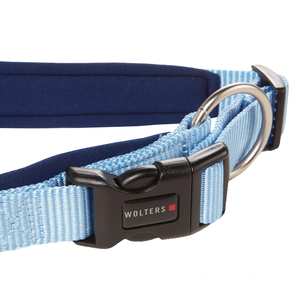 Das Halsband Professional Comfort von Wolters ist ein besonders robustes Hundehalsband, welches aus weichem und flexiblem Nylon besteht. Es ist zusätzlich mit einer hautfreundlichen textilüberzogenen Neoprenpolsterung versehen, die den weichen und bequemen Sitz des Halsbandes noch verstärkt. Durch seinen praktischen Klickverschluss ist das Halsband zudem sehr einfach anzulegen. Es ist dank Neoprenpolsterung für den Hund besonders angenehm zu tragen, da sich diese gut anpasst, und hält zudem auch hohen Belastungen stand. Um einen optimalen Sitz des Halsbandes zu garantieren, ist das Neopren zusätzlich von Textil ummantelt. Dieses verhindert, dass sich bei UV-Strahlung Weichmacher aus dem Neopren freisetzen und Allergien bei Hunden auslösen.