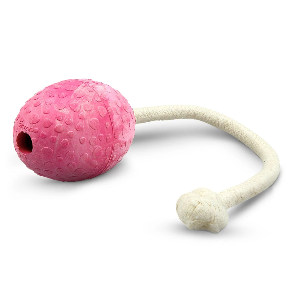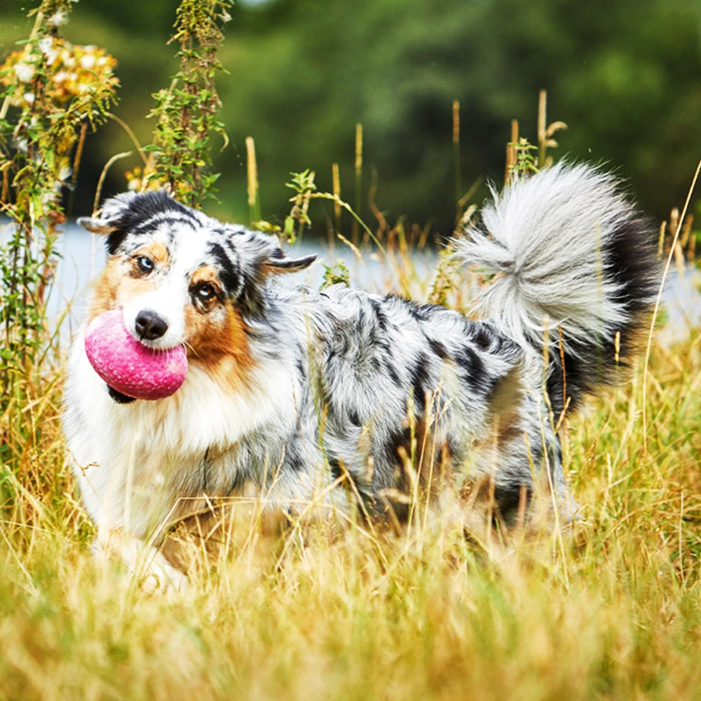 Mit dem Wolters Straußenei mit Seil haben Vier- und Zweibeiner gemeinsam jede Menge Spaß: Das unregelmäßige Sprungverhalten des Eies erhöht die Spielfreude für beide und fördert nebenbei die Koordinationsfähigkeit des Hundes. Die Straußeneier sind aus reinem Naturkautschuk geformt, natürlich gefärbt und somit absolut unbedenklich für den Vierbeiner. Zusätzlich sind die Eier sehr strapazierfähig, kaufest und mit Leckerlies befüllbar. Für alle, die das Straußenei mit noch mehr Schwung werfen wollen, gibt es eine Ausführung mit integriertem Seil. So fliegt das Straußenei noch weiter und der Spielspaß steigt. Zudem hat der Hund eine weitere Möglichkeit das Ei aufzunehmen.